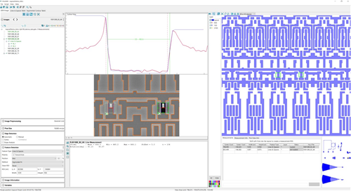 ProSEM is very powerful in measuring similar features and pattern arrays automatically. With defining metrology recipes, the batch mode operation can be applied to large image sets and different projects. Additional capabilities of ProSEM include layout-based measurement definition and automated SEM image acquisition via a digital interface.