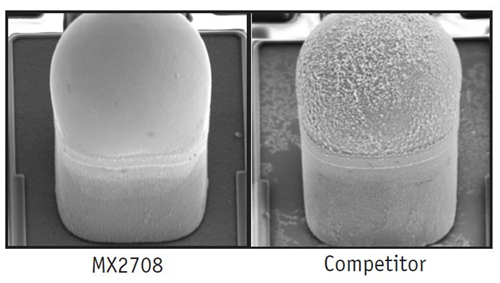 • Product Detail: MICRONOX MX2708 formulated for the demanding cleaning challenges presented within leadless devices such as low standoff gaps and fine pitches of Cu Pillar flip chips, 2.5D/3D ICs, SiP and AiP. MX2708 completely removes organic acid residue of all kinds at low, safe operating concentrations all while having no effect on exposed metal and intermetallic alloys including Cu, Al, Sn, Pb, Ni, Ag, and Au finishes. MICRONOX MX2708 most effectively cleans organic acid flux residues at lower concentrations in spray-in-air cleaning systems.